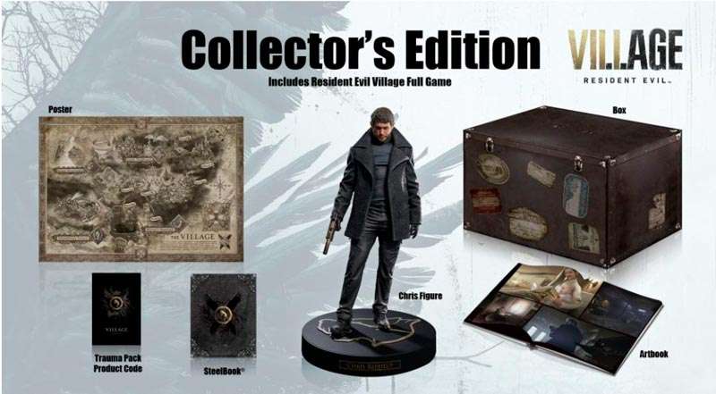 Hay una edición sólo para amantes de la franquicia, es la de los coleccionistas, misma que además del juego y todo lo que ya trae la edición Deluxe de RE8 trae una figura de Chris Redfel, un poster, un libro de arte y una caja SteelBook de edición de coleccionista.